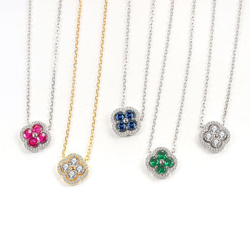 S925 gümüş şanslı dört yapraklı yonca kolye platin kaplama Vintage stil çocuk klavikula zinciri zirkon