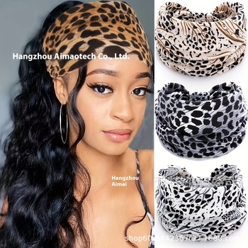 1 parça AIMA avrupa-amerikan moda leopar Unisex Yoga saç bandı-örme geniş spor kafa 24x15cm