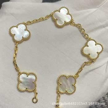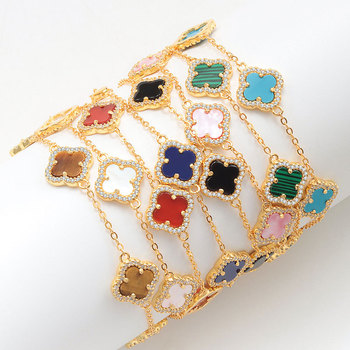 Yeni CNC toka dört yapraklı yonca beş çiçek alaşım altın kaplama erkek bilezik doğal kırmızı akik beyaz fritildiamond tam elmas