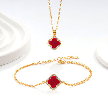 Dört yapraklı yonca kolye küpe seti kadın S925 gümüş kaplama 18K altın anne kabuk zirkon avrupa amerika takı